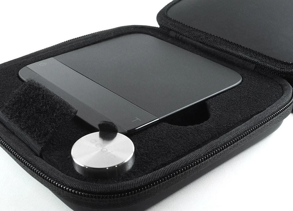 Designed to fit the Acaia Lunar, the 100g calibration weight, and USB charging cord all at the same time.