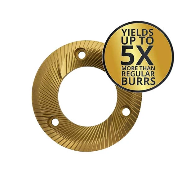 – Pre- seasoned burrs eliminates time and kg’s of coffee when bedding the new burrs in