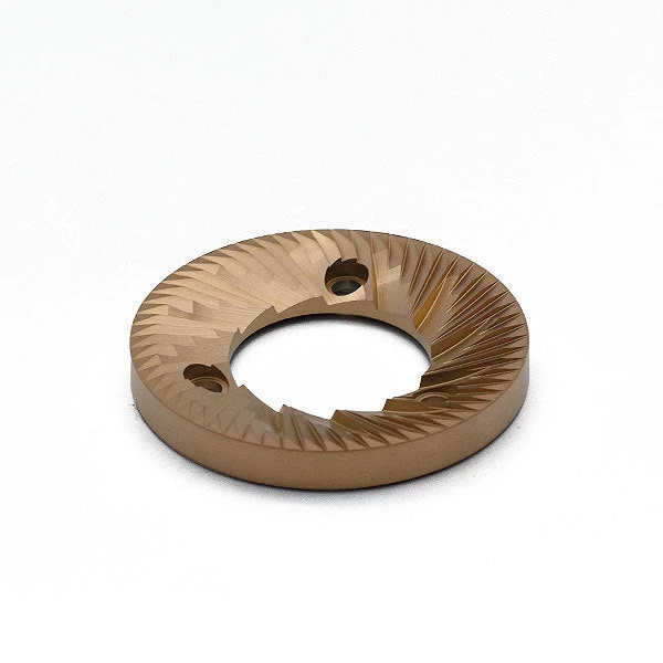 The special coating red speed TiAICN Titanium Aluminium carbon Nitride has many advantages on the burr and the ground coffee. This custom geometry burr set is even with a smooth design.Â
