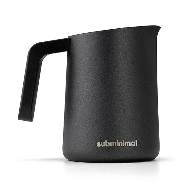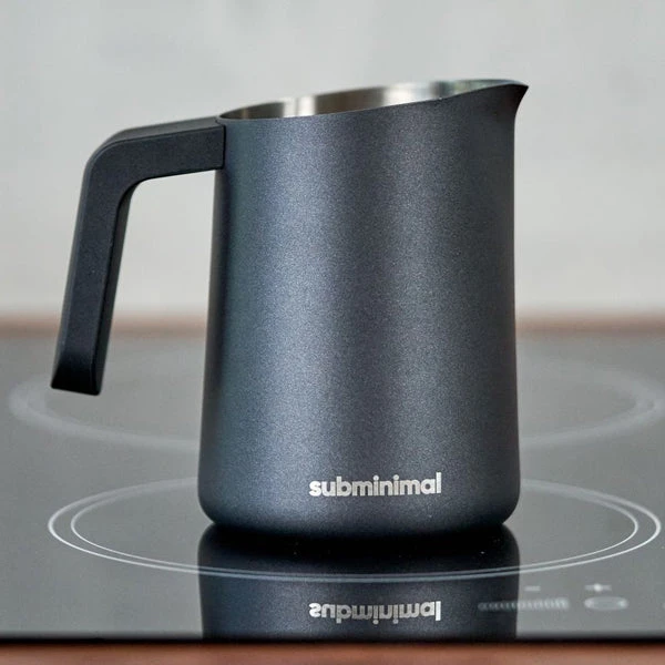 The Subminimal FlowTip Milk Jug is a unique, ergonomic, and stylish milk jug that can be used on a stovetop to heat up your milk to the perfect temperature and makes learning and pouring latte art easy.Â