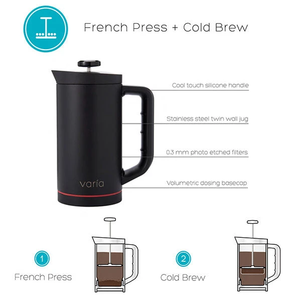 The Varia Multi Brewer offers unprecedented brewing flexibility that accommodates everyone’s favourite styles of brewing coffee in an all-in-one coffee and tea brewing device. Whether it’s French Press coffee , Stovetop Espresso Moka Pot, Cold Brew Coffee, Pour Over Style Coffee or Tea brewing; the Varia can be made to brew any of these styles to perfection.