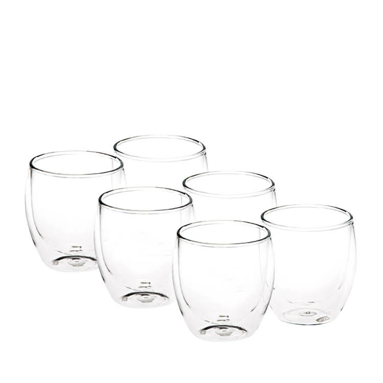 Drink your coffee with class and comfort with the Bodum Pavina Glass 6pc Set. These glasses effectively maintain your drink’s temperature, keep your hands free of condensation, and look stunning.