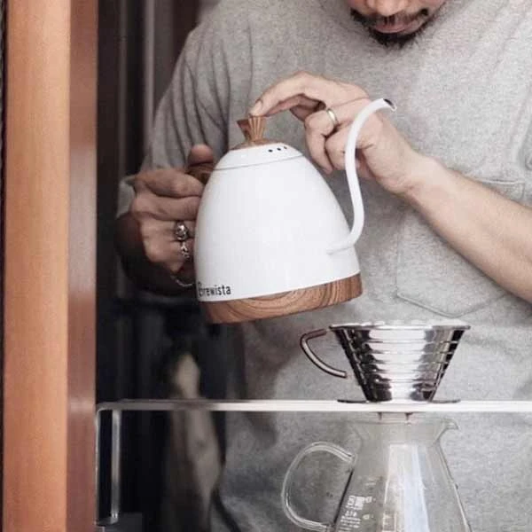 The Brewista Artisan Gooseneck Kettle is a stylish and functional variable temperature kettle with a pour over-designed spout for precision. Built with a style for your brew bar, there’s a wood grain lid, base and handle along with four body colours, all are built to stand and perform.