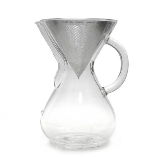 This Chemex departs from the classic design with the handle, which makes it easy and comfortable to move the brewer around and pour from it. The borosilicate glass is heat-resistant, extra durable, and crystal clear.