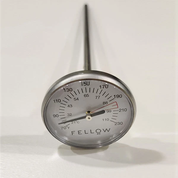 This replacement thermometer is a perfect fit for your Fellow Stagg Stove Top Pour Over Kettle. The thermometer shows both in Celsius and Fahrenheit and is effortless to read. Unlike generic thermometers for stovetop kettles, the face of the Stagg Brew Range Thermometer is marked with the optimal brewing temperature for pour-over coffee (195°-200° F) so you don’t have to guess when it’s time to switch off the heat and start pouring. This thermometer can also be used with the Fellow Rave Stove Top Tea Kettle.