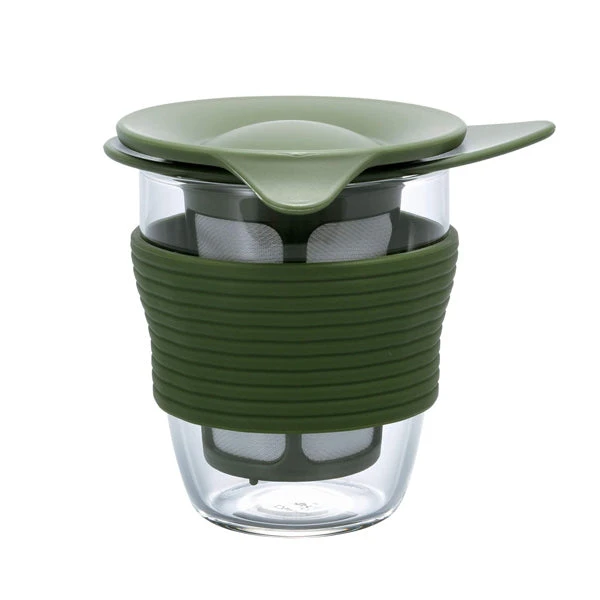 Steep and drink your tea with the same device: the Hario Handy Tea Maker. The all-in-one design includes a tea infuser, a glass cup, and a lid to make enjoying tea a simple, fun event. Just add tea, fill with water, and steep for a couple minutes. So easy!