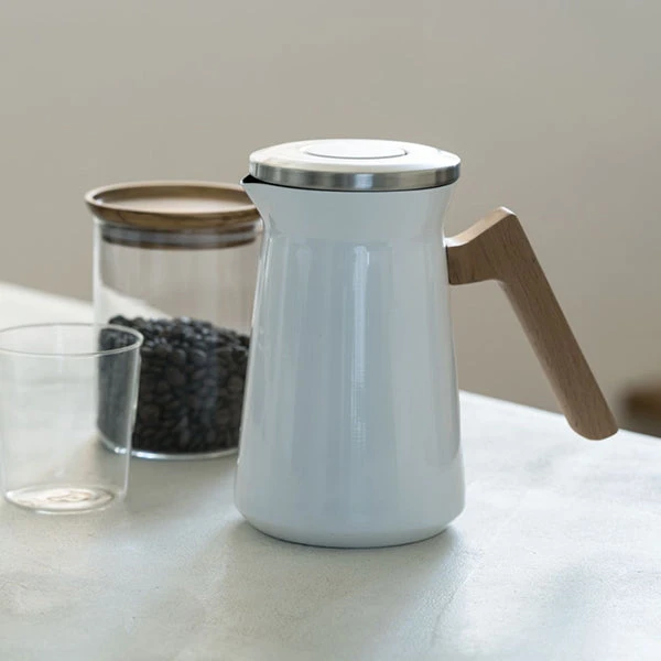 Hario’s Stainless Thermal Pot will make sure your coffee stays hot for a long time as you serve it. The thermal server is a double-walled and heat-insulated stainless steel vessel with a beautiful wood handle on top for a natural finish. It can be used to brew coffee directly into it, making it perfect for your daily pour overs.