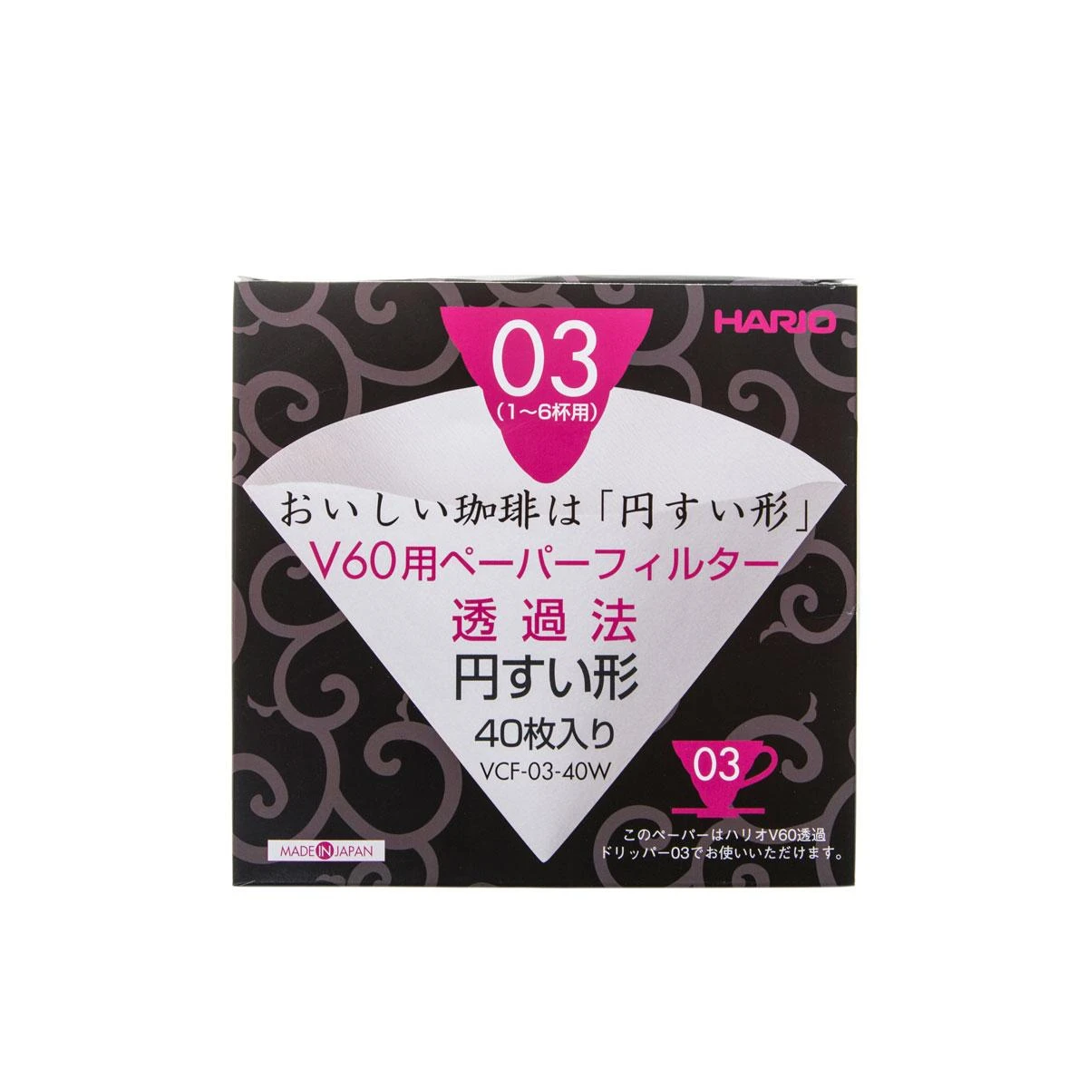 The V60 3 Cup (40PCS) Filters that come in a box are the original Hario paper filters manufactured from their first Factory. Using them alongside your Hario V60 Brewer, these filters have a smooth texture to both sides of the filter making superb even and steady flow of water during brewing.