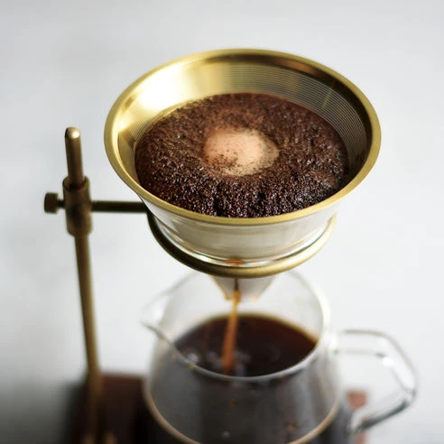 The stainless steel dripper is self-filtering, so you don’t have to produce paper waste or keep up a paper filter supply. The filter allows the coffee’s natural oils to enter your cup, encouraging a syrupy body, a full flavor, and rich aromas.