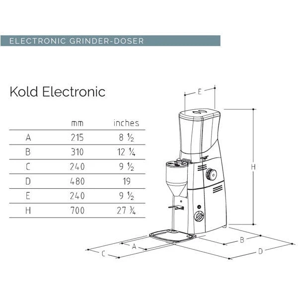 New to the Mazzer features is the side-mounted grind adjustment dial. Moving away from the collar ring allows the user easy access to cleaning the grinder at the end of the day without losing the grind setting. With the same 71mm steel conical burrs, used in the Mazzer Robur, the Mazzer Kold can deliver consistently uniform espresso grounds very quickly.  The large 1.5kg hopper keeps you pulling shots for long periods of time in-between refills. The Kold Electronic features an electronic touch pad with a digital shot timer that can program a single or double dose.Â