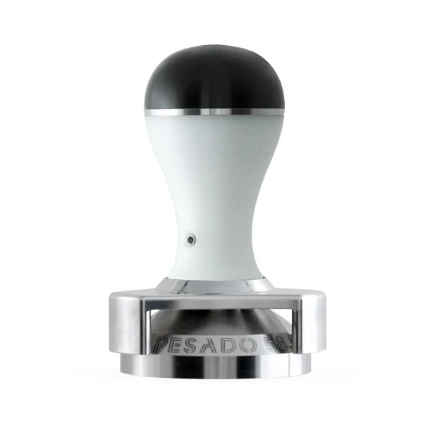 - PESADO 58.5 Metal Tamper – White and Silver – w/ Depth Adjuster