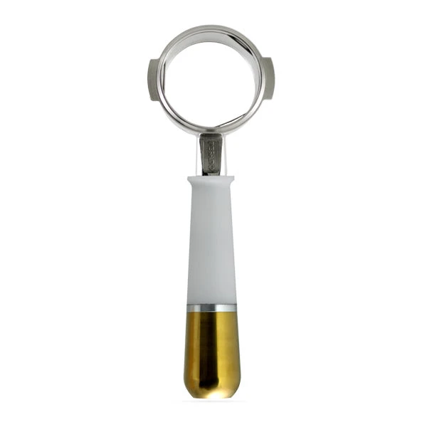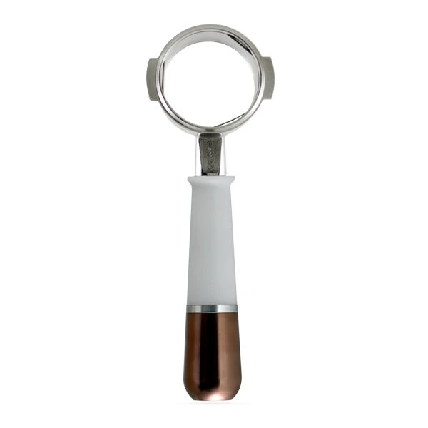 Available in Modular Designs of Black or White in the Upper Handles with Silver Black, Gold or Bronze at the base of the Handle. Choose from Spouted or Naked / Bottomless Basket and the model of machine you require it to fit, either LM & E61 Group Heads or NS which fits Nuova Simonelli and Vittoria Arduino Machines.