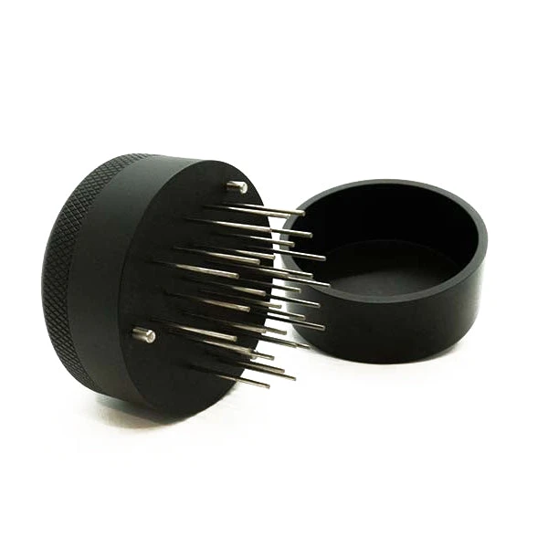 Minimal effort – Designed with strategically placed needles, this tool spreads out the coffee in the basket without spills.