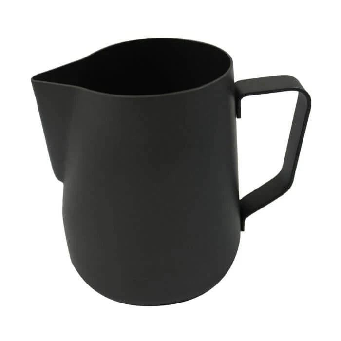 Designed by baristas in busy cafes, the Rhinowares Black Stealth Milk Jug 600ml is built to maintain your high standards for hours and hours. The thick 1mm jug wall is built with heavy duty stainless steel and twice coated with non-stick, food safe teflon that is easy to clean and long-lasting. The thickness of the jug allows for a longer stretch time and cooler handling.