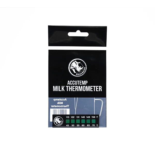The Rhino Coffee Gear Accutemp stick-on thermometer can be placed on your milk frothing pitchers to help achieve a perfect temperature result every time! The state of the art liquid crystal indicators turn from green to black as you steam your milk and the indicated temperature is achieved.