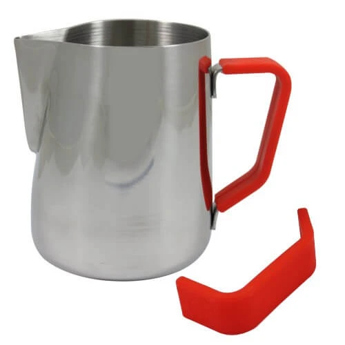 Gain more control over your milk pouring with the Silicone Pitcher Handle Grip — Red. This grip wraps around your 12-32oz size milk pitcher’s handle tightly to give you more grip and greater precision when you pour.